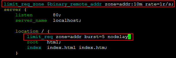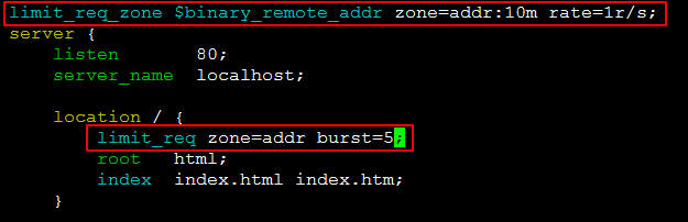 使用示例:limit_req zone=zone burst=5 nodelay;