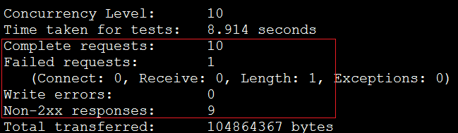 [root@10.0.10.159 ~]#ab -n 10 -c 10 http://10.0.10.158/download/testfile