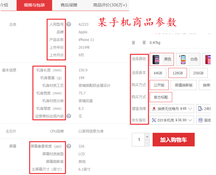 - 相同分类下的商品,规格参数一样,但其对应的值是不一样的。