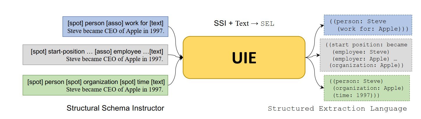 UIE,原文《Unified Structure Generation for Universal Information Extraction》,核心思想为将序列标注任务转化为Seq2Seq的生成任务,将手工提示模板与原始文本进行结合,通知模型待抽取的内容,再通过特定的抽取格式,进行逐字解码生成,提高模型效果。是一篇「手工模板且无答案空间映射」的Prompt论文。不过UIE适用于所有信息抽取任务,不限于NER任务,但后面主要以NER任务为例,进行阐述。