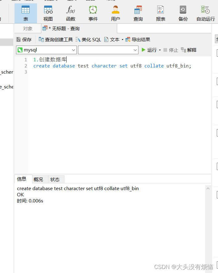 1.创建数据库create database test character set utf8 collate utf8_bin;