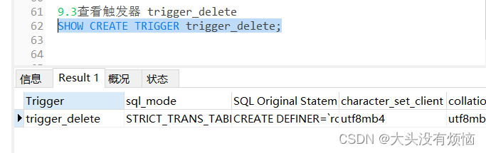 (4) 查看触发器 trigger_delete