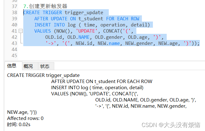 (3) 查看触发器 trigger_update