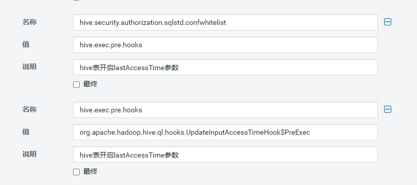 1.hive-site.xml 的 Hive 服务高级配置代码段(安全阀)中添加2个参数: