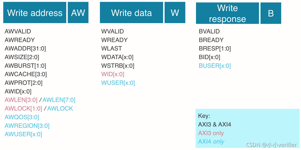 | AxLEN[3:0] | 指定每个burst中具有1~16个传输,AXI3 |