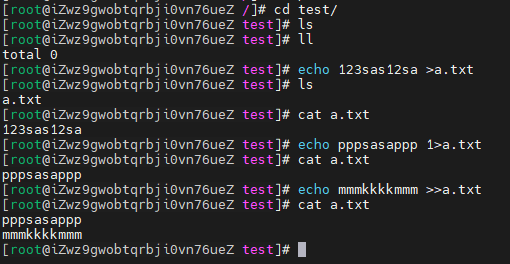 注:一个 > 是生成文件,若以前有文件,会删除,重新覆盖本次执行的内容