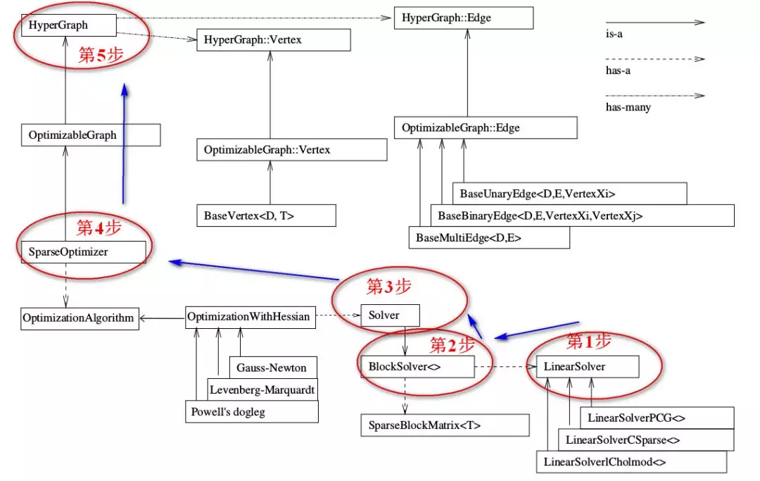 - 边:约束,指位姿之间的变换关系,通常表示误差项。