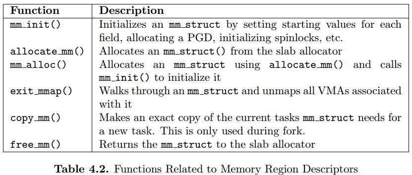 2、与进程相关的结构mm_struct以及mm_struct的配置、初始化和释放。(4.2,4.3)