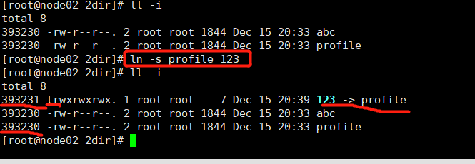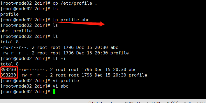 14.# ln profile abc 建立profile的硬链接,名称为abc