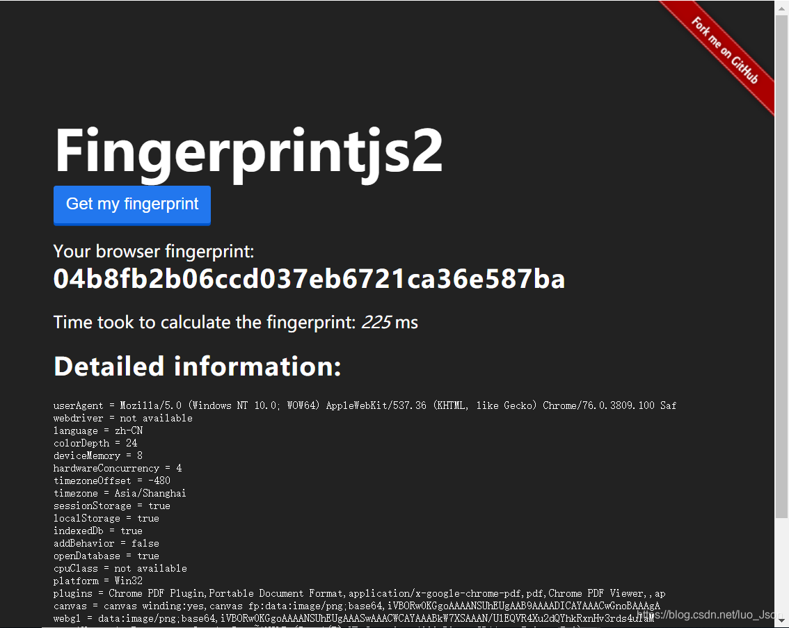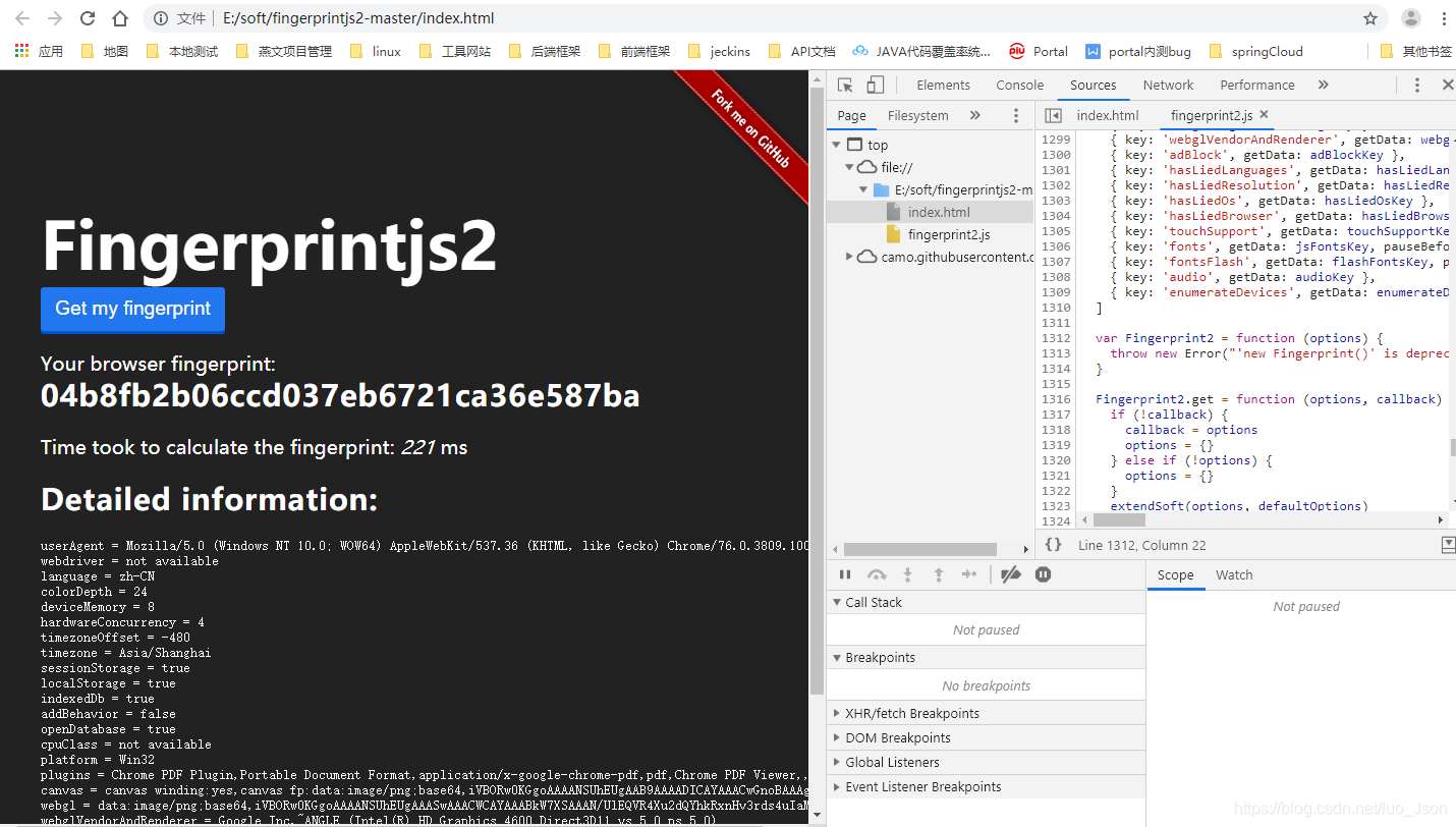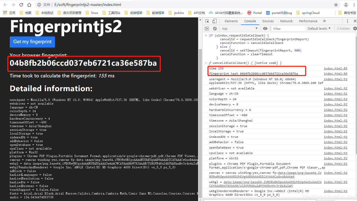 注意:源码托管,下载到本地,解压后,点击index.html即可获取浏览器指纹2、API分析