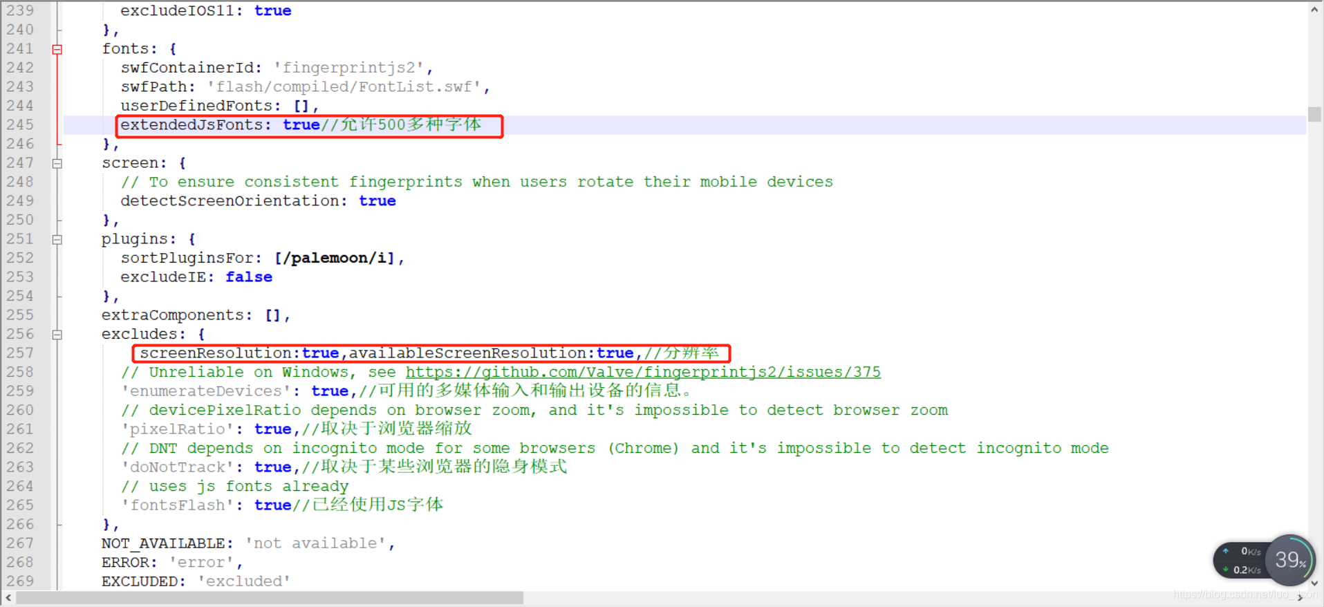 修改源码方式需要从github上下载源码,对fingerprint2.js文件232行改造