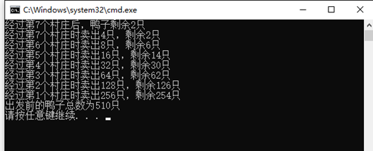 cout << "经过第7个村庄后,鸭子剩余" << duck << "只" << endl;
