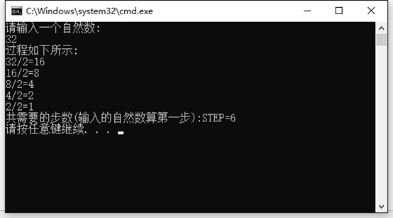 cout <<"共需要的步数(输入的自然数算第一步):STEP="<< step << endl;//输出需要的步数