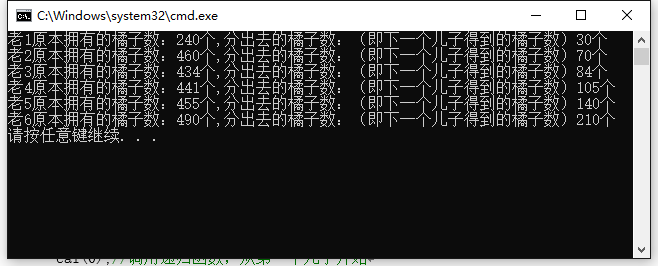 /*递归函数,计算原本橘子数和分出的橘子数,返回下一个儿子,当i=6时退出递归*/