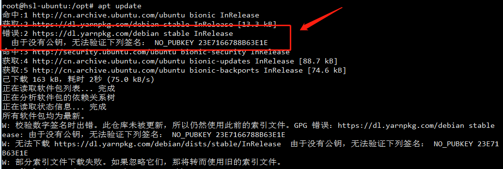 apt autoremove问题:获取更新时,出现 “没有公钥,无法验证” 的错误