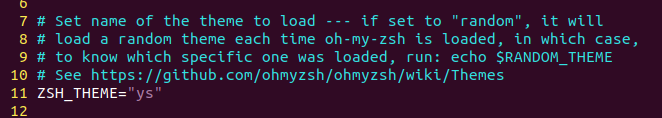 会看到有一行 ZSH_THEME="robbyrussell" 的脚本(这里我换成 ys主题了),把它替换成 ZSH_THEME="ys"。然后回到终端,输入source ~/.zshrc,你会发现你的 zsh主题变了。