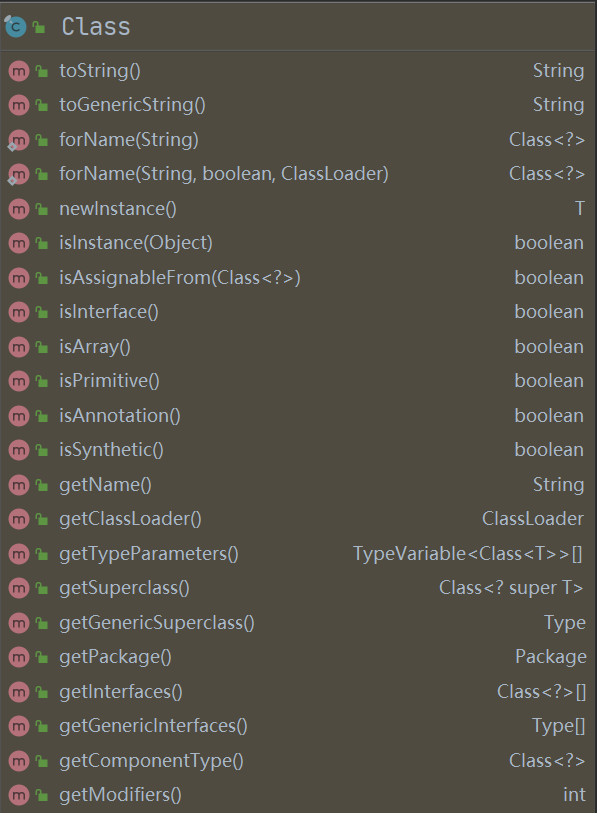 一个类被加载后,JVM 会创建一个对应类的 Class 对象,类的整个结构信息会被放到Class 对象中。这个Class 对象就像镜子一样,通过这面镜子,可以得到对应类的全部信息。