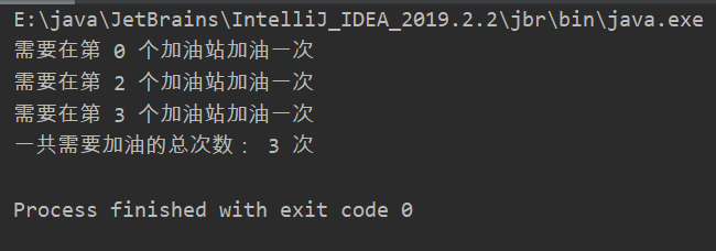 System.out.println("需要在第 0 个加油站加油一次");