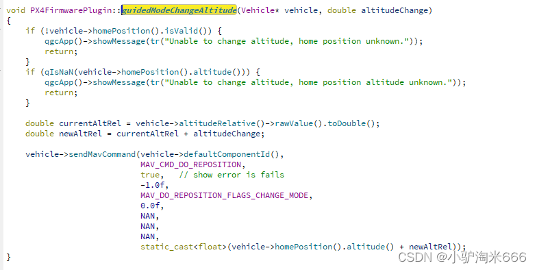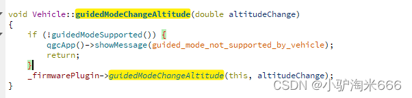 CuideActionController-->executeAction()-->vehicle.cc.guideModeAction()-->firmwarePlugin->guideModeAction()-->_setFlightModeAndValidate()-->setFlightMode();