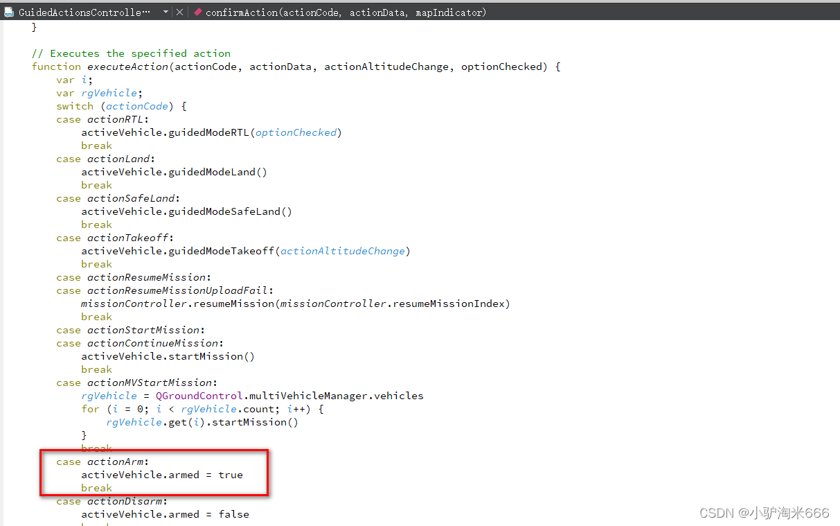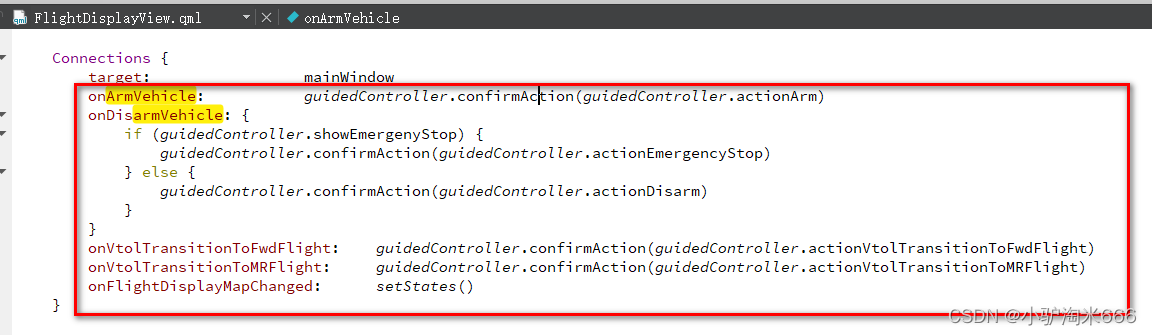 其中arm和Disarm流程一致,直接改变vehicle.armed的属性值,再通过Q_PROPERTY进行绑定,再触发setArmed和armedChanged;