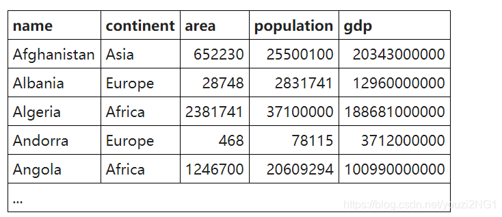 )连接子查询的查询逻辑不同于原有的查询,如上述代码,可以理解为先执行select name,continent,population