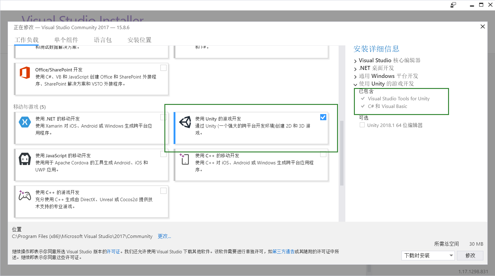 - VS2017之前的版本调试unity 需要下载 Visual Studio Tools for Unity