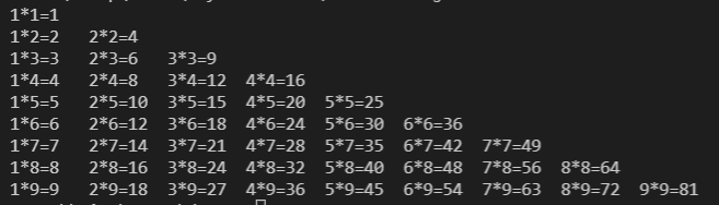 1.在控制台输出打印九九乘法表