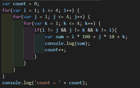 3.判断个十百位数字是否都相等 if(i != j && j != k && k != i){}