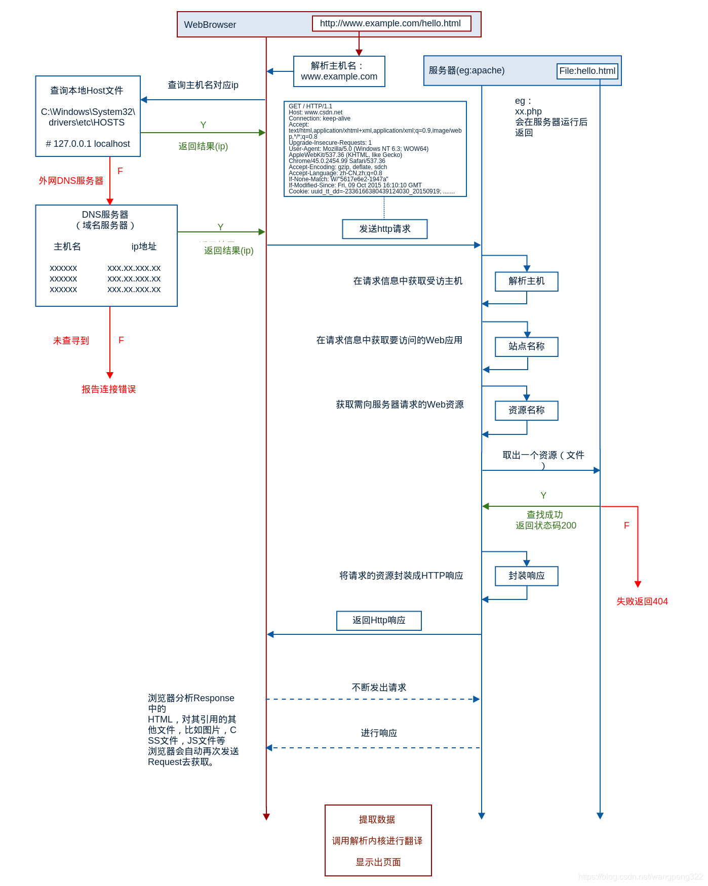 第六步:客户端浏览器获取到了www.baidu.com的对应IP地址,接下来浏览器会请求获得的IP地址对应的Web服务器,Web服务器接收到客户的请求并响应处理,将客户请求的内容返回给客户端浏览器;
