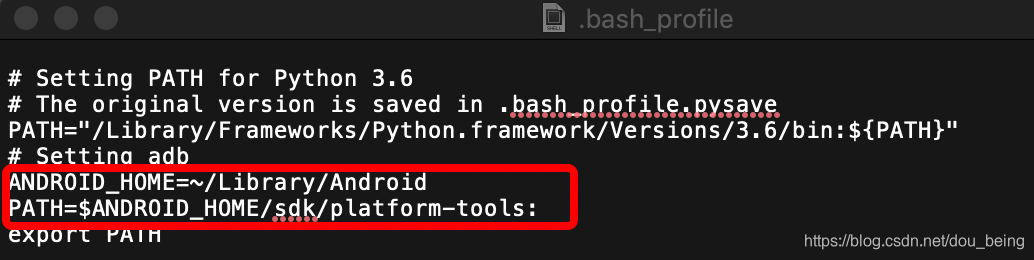 (2)在终端输入:open -e .bash_profile,如下图配置adb环境