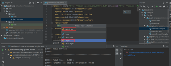 填写HelloScala, 选择Object