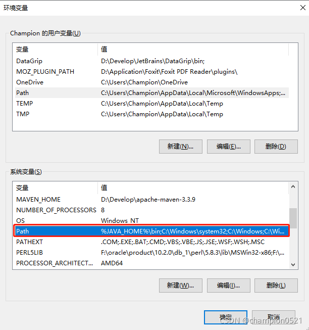 安装成功后需要配置 JDK 环境变量,即将 JDK 安装路径的 bin 路径复制到环境变量 path 里,如下图所示: