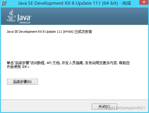 双击安装包进行安装,安装步骤简单,点击【下一步】安装即可。本人安装目录为:D:\Develop\Java\jdk1.8.0_101,安装完成如下图所示: