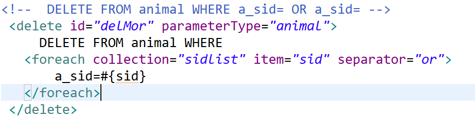 用foreach标签中的open="" close="",分别表示以什么开始和以什么结束