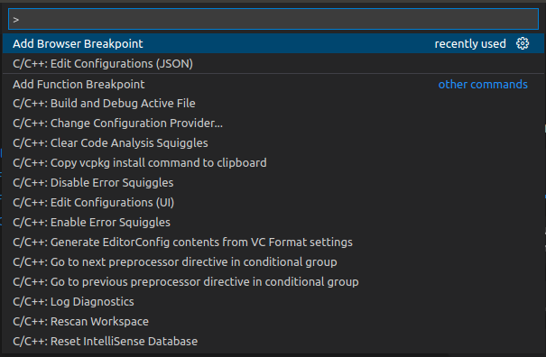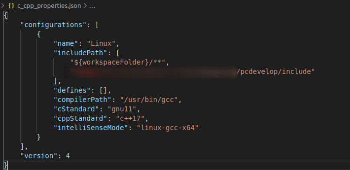 输入configuration,有UI和JSON两种方式,选择"C/Cpp:Edit Configurations (JSON)":