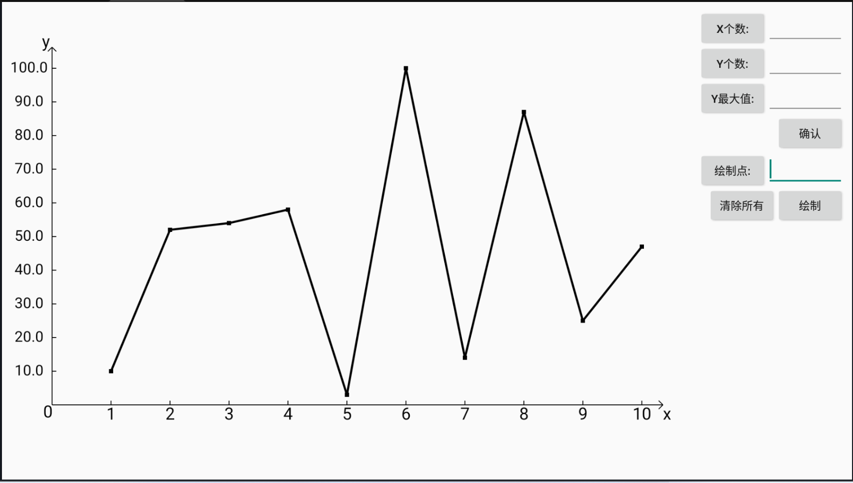 ”确认”键上面三个参数可实现对坐标系的自定义。“清除所有”按钮会将折线图清除,不会将坐标系也清除。