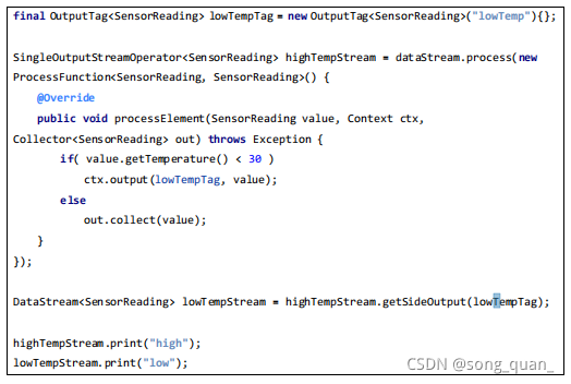 一个 side output 可以定义为 OutputTag[X] 对象, X 是输出流的数据类型。 process