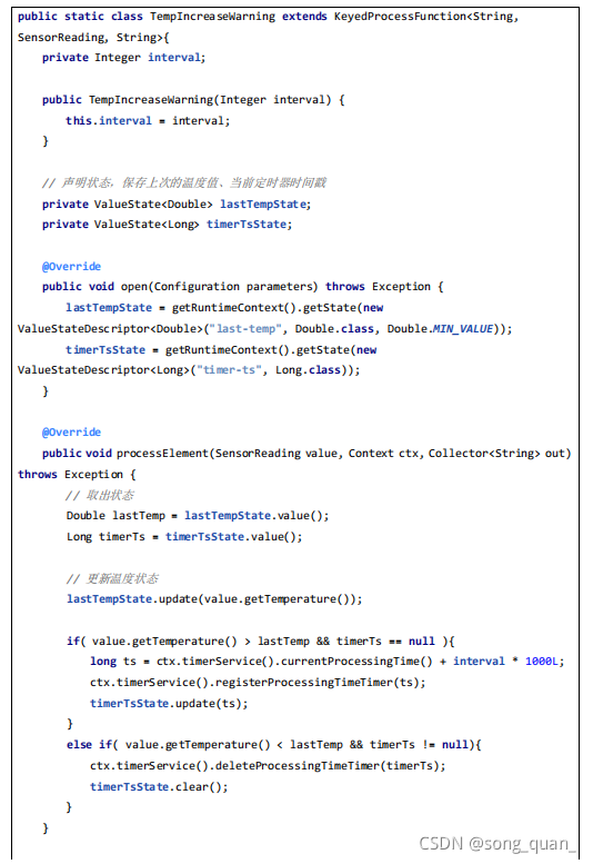看一下 TempIncreaseWarning 如何实现 , 程序中使用了 ValueState 状态变量来保