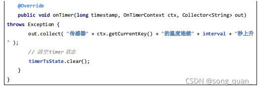 • onTimer(long timestamp, OnTimerContext ctx, Collector<O> out) 是一个回调