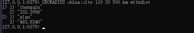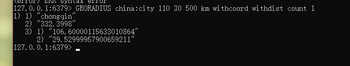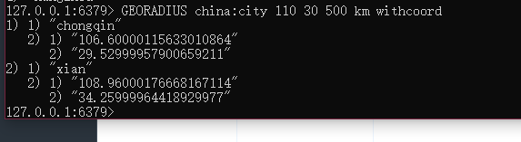 GEORADIUS china:city 110 30 500km withcoord:显示找到的地方的经纬度(定位)