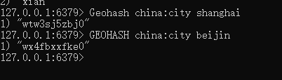 GEOHASH命令 :返回一个或多个位置元素表示,将二维的经纬度转为一维的字符串(字符串越接近则两个地方距离越近)