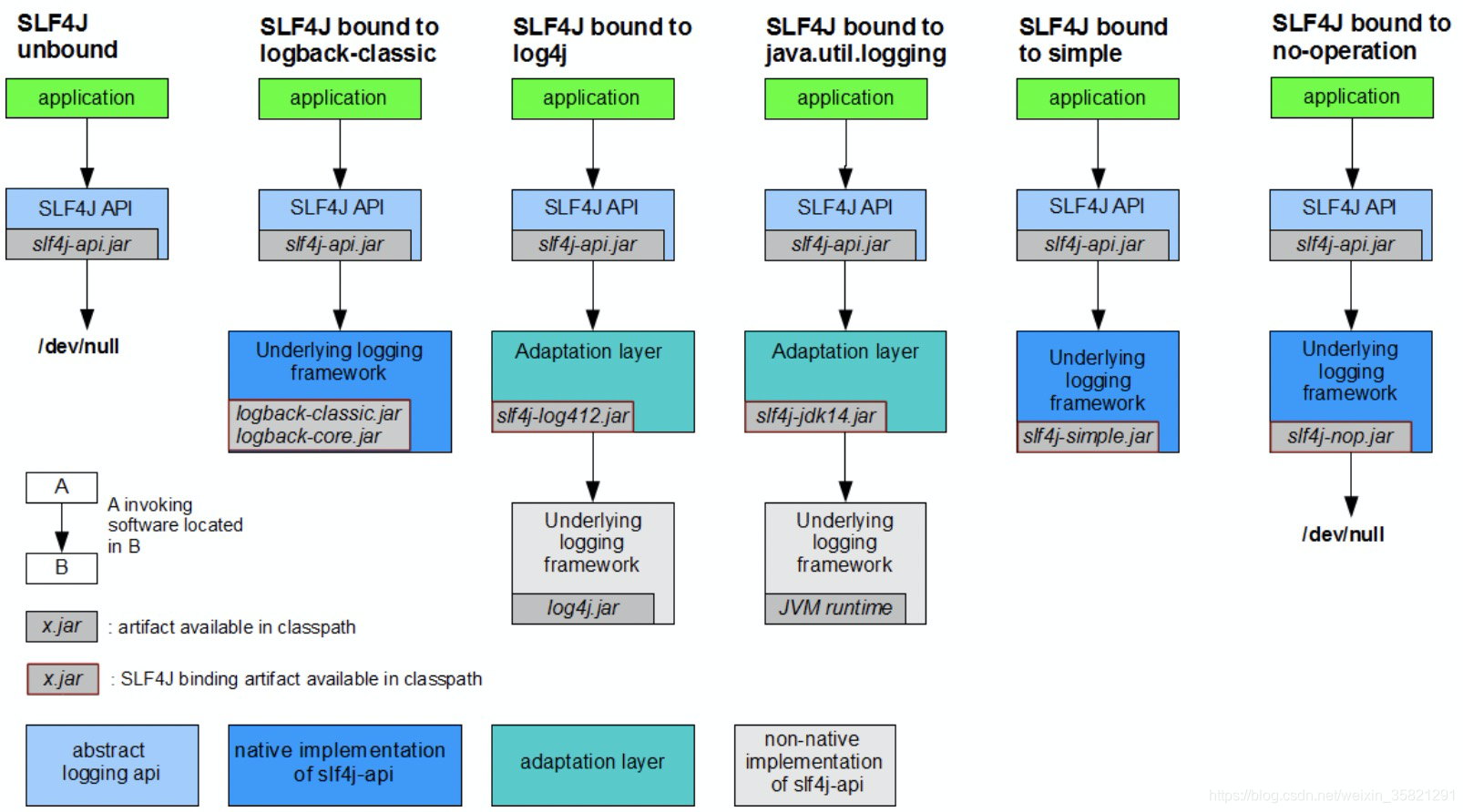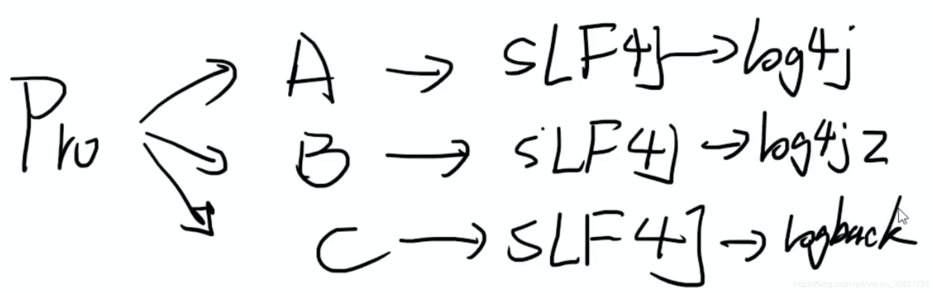 ——》B(slf4j ——log4j2)