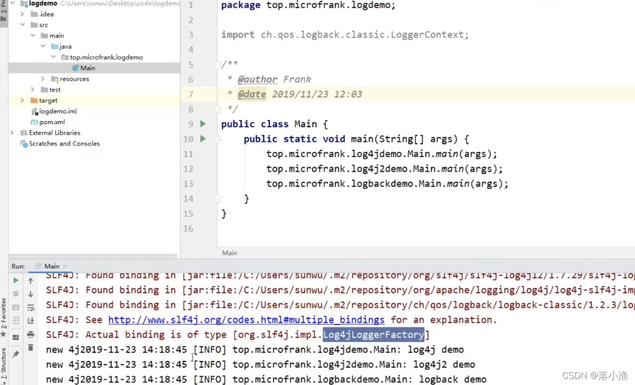 代表存在多个multiple slf4j。最后选择了log4j实现的日志系统 。所以最后展示的时候会统一使用new 4j【可以看到,最后统一使用new 4j进行了所有日志的打印】