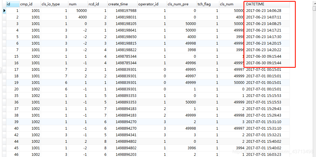 例:SELECT *,FROM_UNIXTIME(create_time) AS DATETIME FROM ebk_cls_io_log;