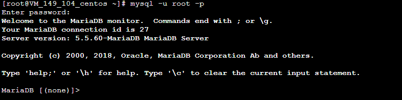 mysql -u root -p若输入刚设定的密码可以登录到 MariaDB 中,则说明配置正确。如下图所示: