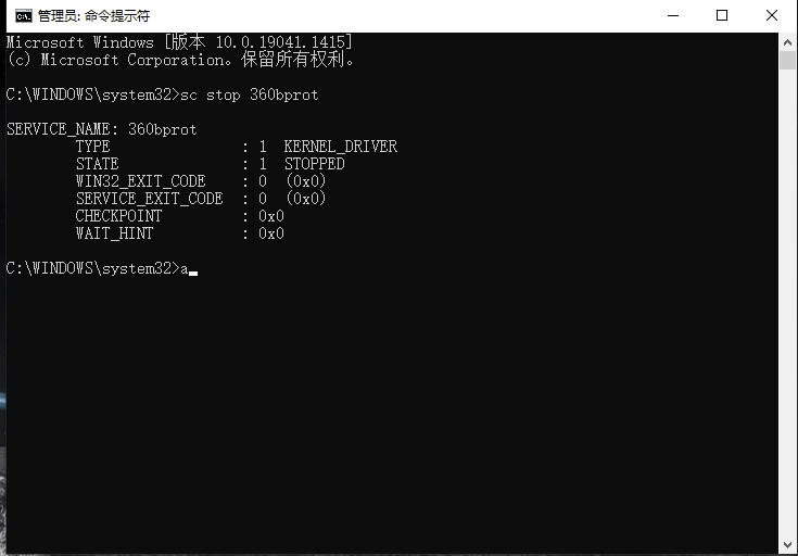 2、执行 sc stop 360bprot
