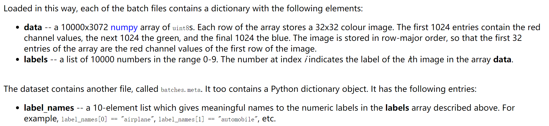 【上述其实翻译自:官方:https://www.cs.toronto.edu/~kriz/cifar.html】