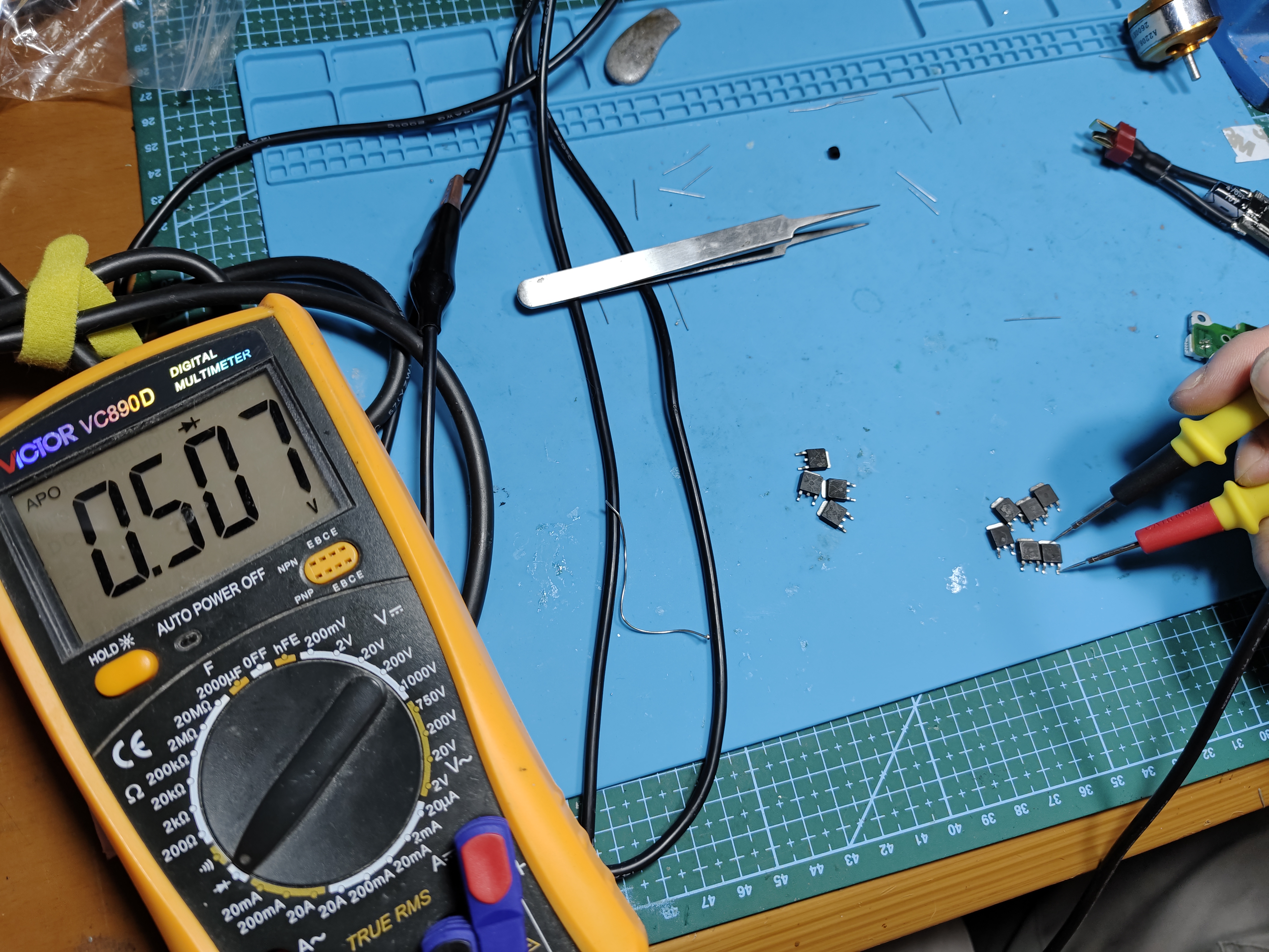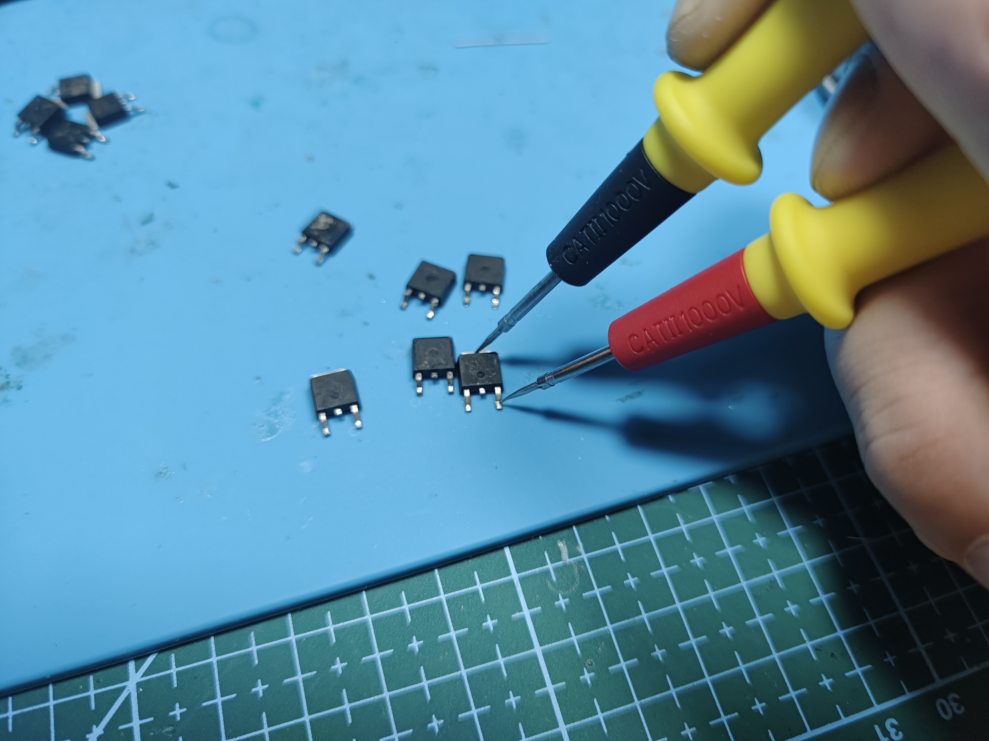 使用二极管档位来测量MOS管,多数时候导通电压应该在4.5-5.5V之间,负极接D引脚,正极接S引脚