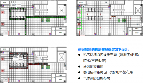 - 机房要考虑设备的进出、维护作业空间、整体的能耗,机房内的监测需要支持短信、邮件的通知。