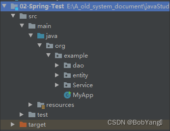 在 org.example文件夹下新建dao,entity,service三个文件夹